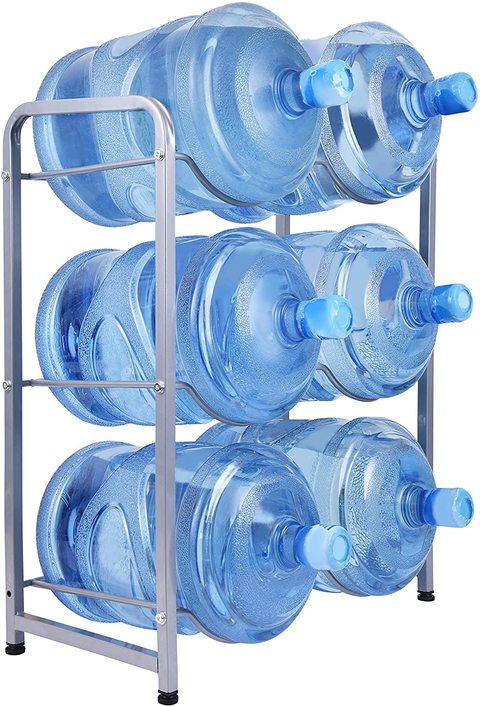 Place your stackable wine racks with your water bottles in a cabinet, on a shelf, or on your kitchen counters.